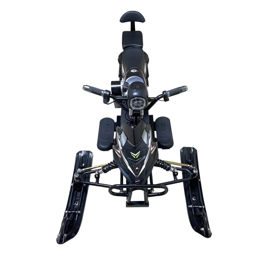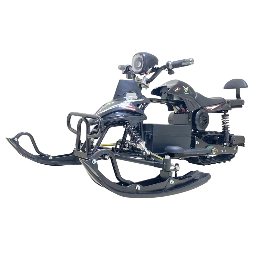 Снегокат оборудован эффективной тормозной системой и амортизаторами, которые обеспечивают безопасность при езде. Освещение яркое и заметное, что повышает видимость в сумерках и вечером. Электроника оснащена системами защиты аккумулятора от перегрева и короткого замыкания.