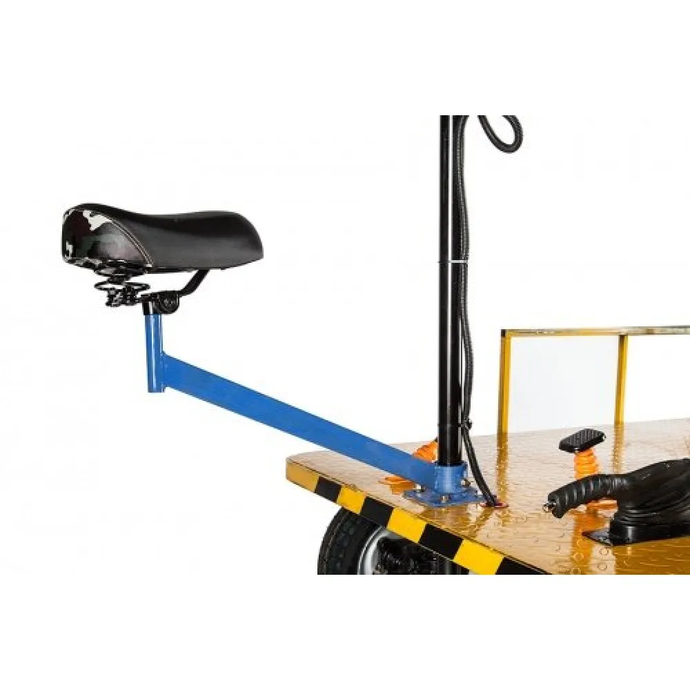 Техника оснащена удобным сиденьем, напоминающим по виду велосипедное и практичной простой рулевой частью. Не требует специального обучения.