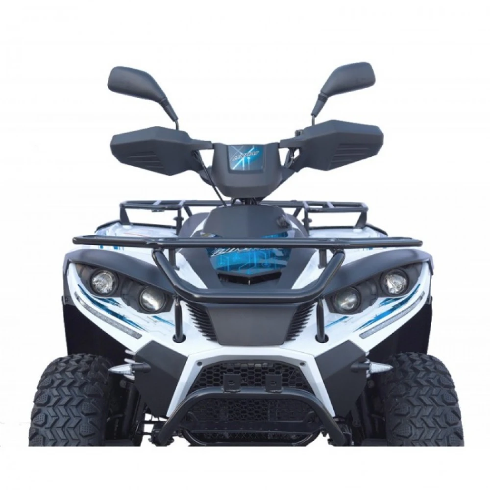Колесная база модели составляет 1270 м для обеспечения повышенной проходимости модели. Для большей безопасности техника оснащена гидравлическими дисковыми передними и задними тормозами. Пробег на одном заряде до 60 км обеспечивают комбинированные аккумуляторы литиевого и гелевого типа. Пользователь легко разовьет скорость 50 км/час при мощности мотора 3900 Вт. (Обращаем внимание, в комплектацию с техникой батарея не входит).