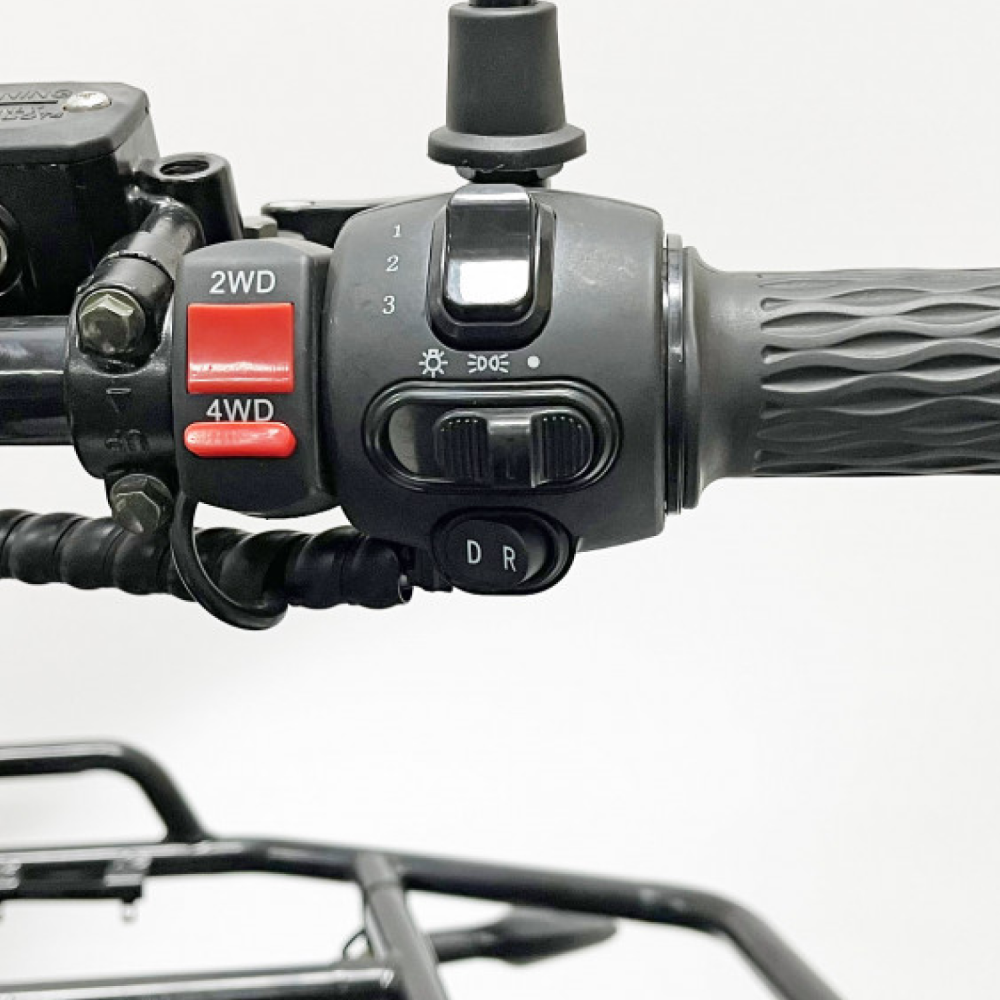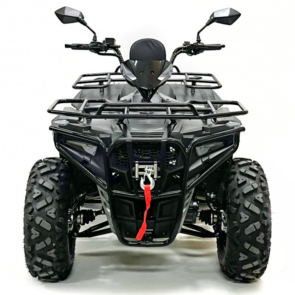 Двигатель квадроцикла – это высокоэффективный PMSM мотор мощностью 10 кВт, который обеспечивает динамичное ускорение и плавное распределение мощности. Максимальная скорость достигает 70 км/ч, что позволяет уверенно передвигаться как по проселочным дорогам, так и по легкому бездорожью, а максимальная нагрузка в 200 кг открывает широкие возможности для перевозки пассажиров и грузов. Дополнительные опции, такие как фаркоп и лебедка, значительно расширяют функциональные возможности транспортного средства, делая его незаменимым помощником в самых разнообразных ситуациях.