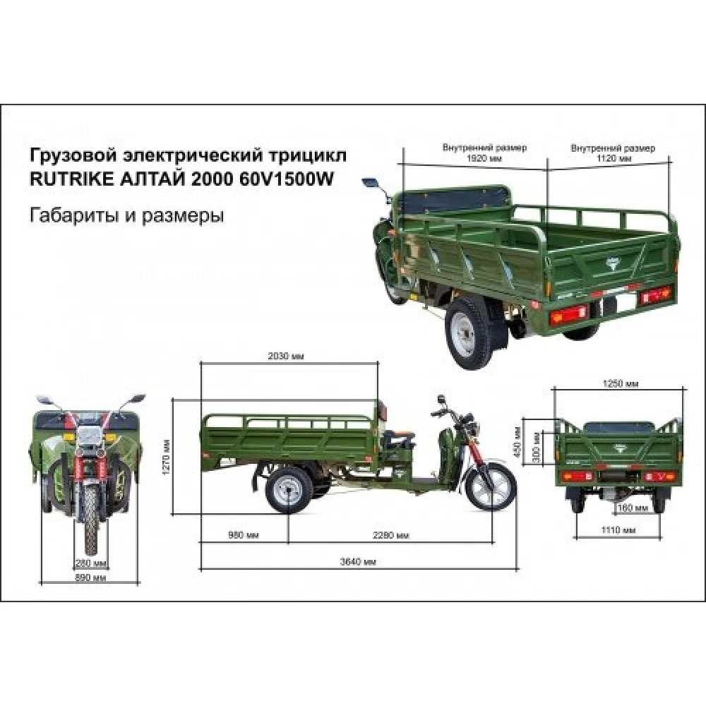 Электротрицикл грузового типа Rutrike Алтай 2000 60V1500 Вт, зеленого цвета – усовершенствованная модель ожидает райдера. Настоящие знатоки несомненно оценят идеальное сочетание отменного качества и доступной цены. Техника можно эксплуатировать круглый год. Большой грузовой отсек подходит для подвоза товаров на рынках, перевозки багажа в аэропортах. Насладиться комфортными поездками захочет каждый пользователь. Купить товар по лучшей цене, получить обслуживание командой компетентных специалистов, доставку на выгодных условиях предлагает наш интернет-магазин.